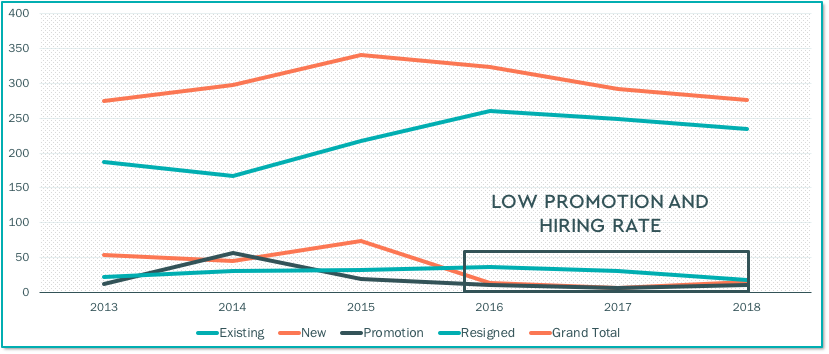 The organization was very stable and progressing well with demographic transformation from an overwhelmingly white and male Apartheid-era institution.